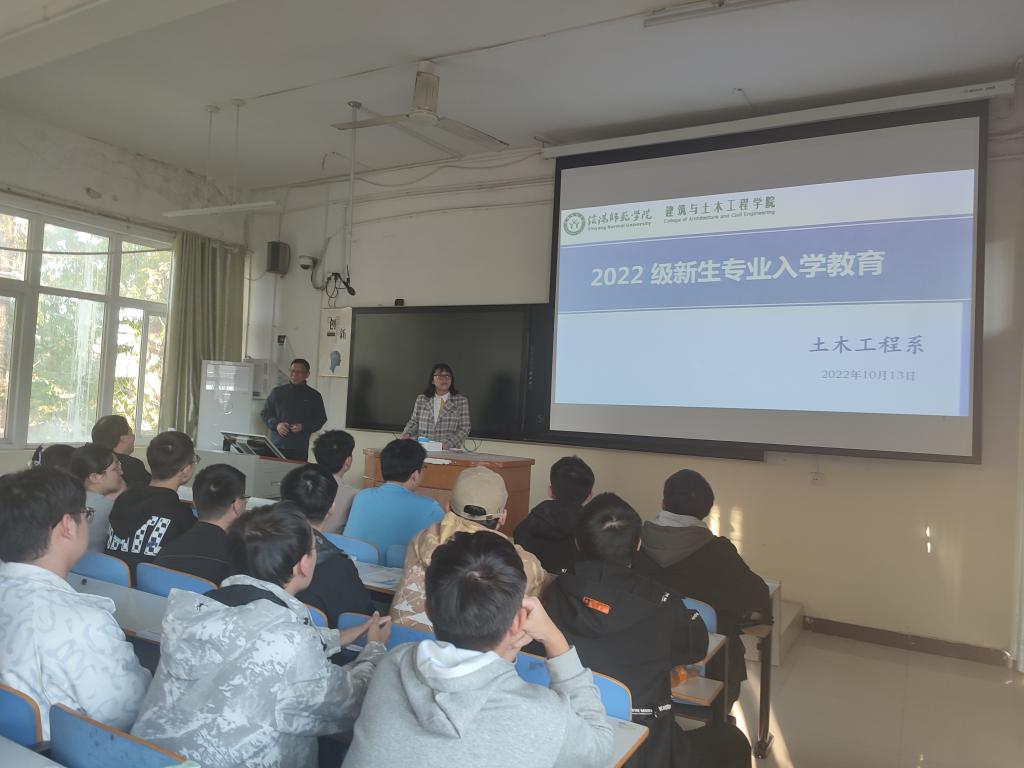 为使2022级土木工程专业新同学能更好的适应大学生活,更加详细的了解土木工程专业,明确学习要求。土木工程系于2022年10月13日下午四点半在教3-12教室举行了新生专业入学教育活动,本次活动邀请了我系王述超老师为专家做专题讲座。冀鹏副书记,高春华、张昊、邓林老师参加了本次讲座。