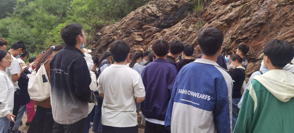 到达震雷山后,系主任高春华、王士革老师简要介绍了震雷山工程地质基本情况。牛文杰、张金浩、刘洋老师带领学生进行实地考察,对震雷山相关矿物、岩石、地质构造和不良地质现象特点做了详细讲解,并讲解了工程勘察和地质灾害治理的相关知识