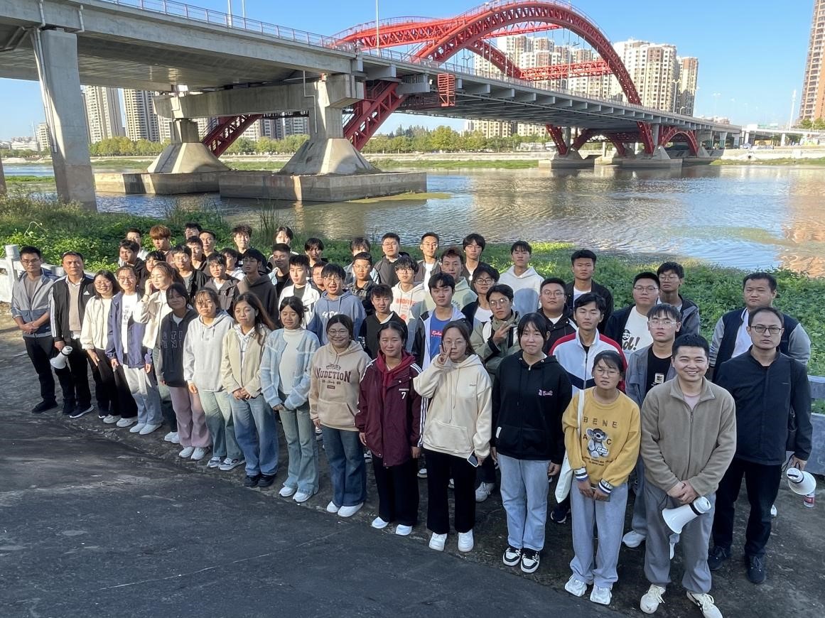 本次实习路线从浉河上游至下游,途径二号新桥、彩虹桥、浉河公园桥、申桥、民桥、十八大街高架跨浉河桥以及琵琶台琴桥,沿途还进行了相关道路的实地考察。在实习过程中,指导教师们深入讲解了道路桥梁的规划、设计、施工、运营与维护等方面的工程实践知识。学生们通过实地走访,观察桥梁结构和道路规划,深入感受了工程实践的复杂性与多样性,对专业知识有了更为直观的认知和理解。