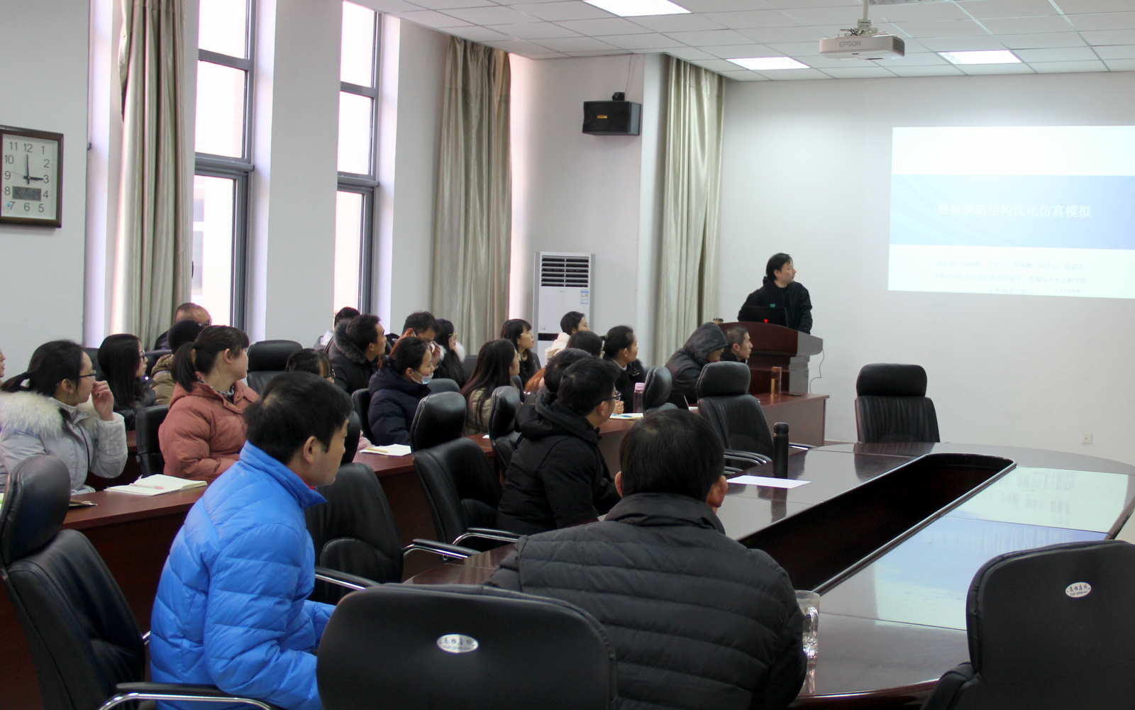 12月15日下午,beat365中文官方网站在综合实验楼206室举办了2020年学术论坛。陈磊磊副教授作了题为“数据驱动结构优化仿真模拟”的报告,报告历时1小时。重点介绍了采用细分曲面法构建非匹配结构有限元与声场边界元网格,并满足声振耦合面一致性要求;采用 Mortar 方法进行非匹配网格的耦合分析;结合MMA构建以等几何模型控制点为设计变量的多目标函数形状优化数学模型,进行形状优化分析;结合SIMP,建立以材料密度为设计变量的拓扑优化数学模型,进行材料分布拓扑优化分析。