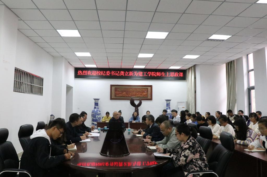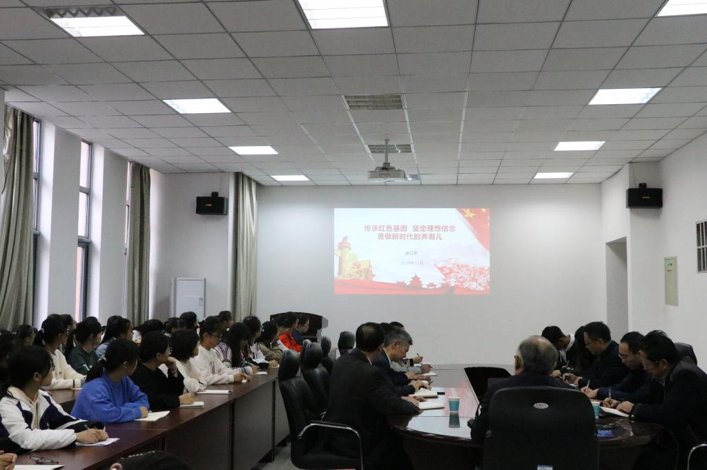 11月1日,根据学校“不忘初心、牢记使命”主题教育的工作安排,校纪委书记龚立新在综合实验楼206会议室为beat365中文官方网站师生上了一堂题为“传承红色基因,坚定理想信念,勇做新时代的弄潮儿”的思政课。学院领导班子成员,辅导员、党支部书记和部分学生聆听了思政课。