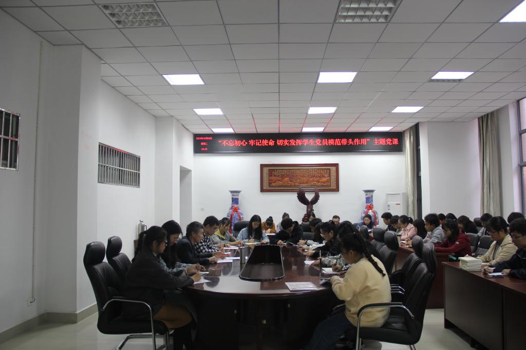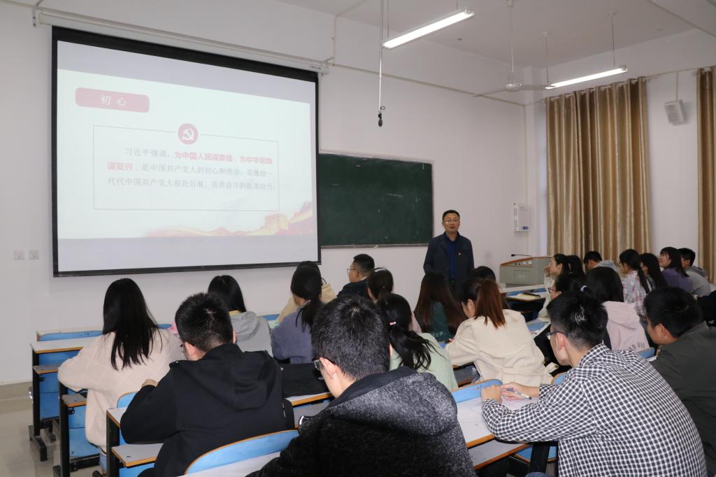 10月15日,学院副院长陈哲在综合实验楼206会议室为学生第三党支部全体党员作了题为《学习习近平关于“不忘初心、牢记使命”重要论述的若干体会》的专题党课。陈哲结合自身所学、所思、所悟,围绕主题教育的重大意义和目标要求,牢记高等教育的初心和使命,努力培养德智体美劳全面发展的社会主义建设者和接班人的问题与大家交流学习心得体会。陈哲指出,全体党员都应当认真检视自己在践行初心和使命过程中存在的问题,剖析根源,认真整改,守住初心,担起使命,为学校和学院的发展建设贡献力量。