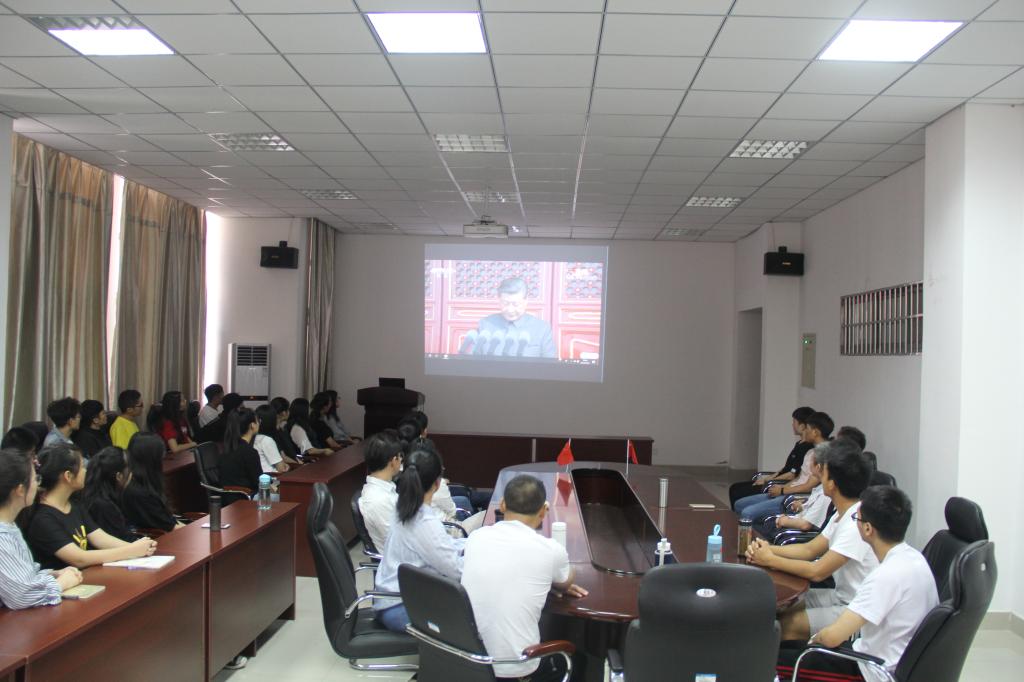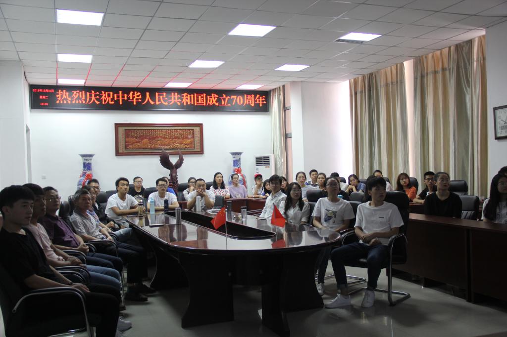 10月1日上午,beat365中文官方网站积极组织师生在综合实验楼206会议室集中收看了庆祝中华人民共和国成立70周年大会现场直播及阅兵式、群众游行,共同庆祝祖国70华诞。学院党委书记黄学玉、党委副书记方明科,部分师生和党员代表共同观看了直播盛况。
