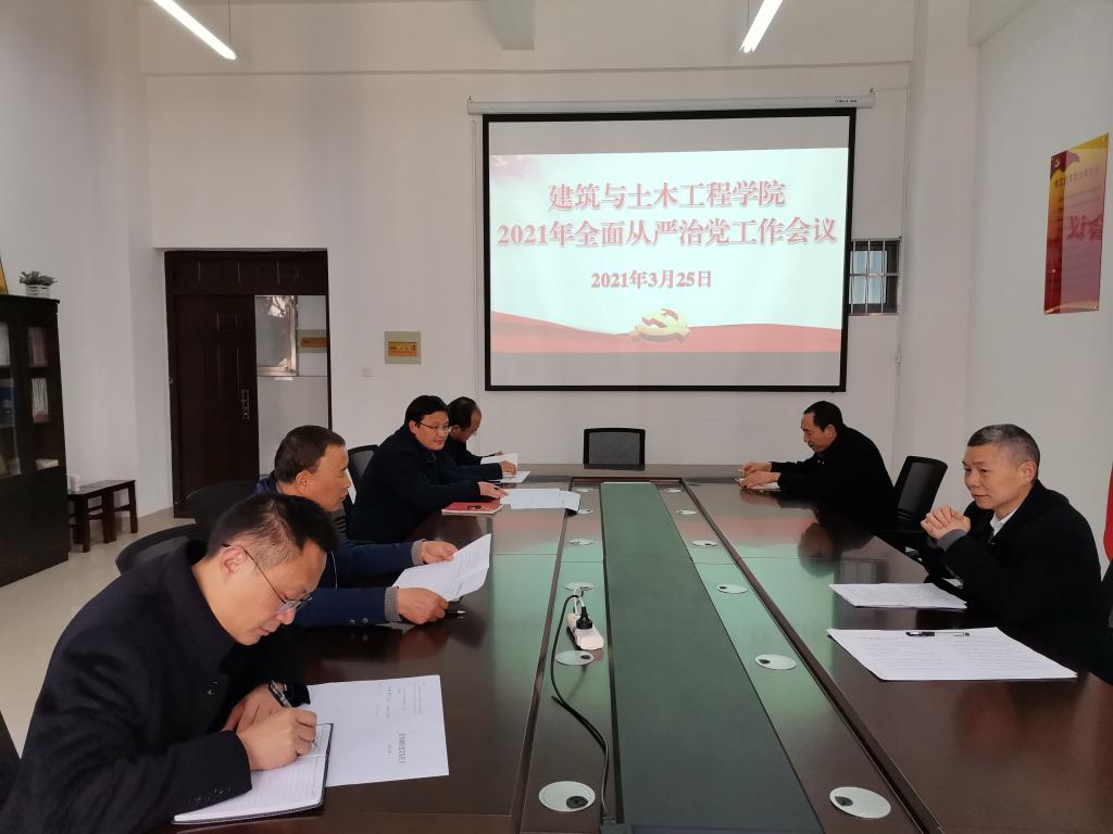 3月25日,beat365中文官方网站在综合实验楼203会议室召开2021年全面从严治党工作会议。学院党委班子全体成员参加了会议。会议由学院党委书记黄学玉主持。