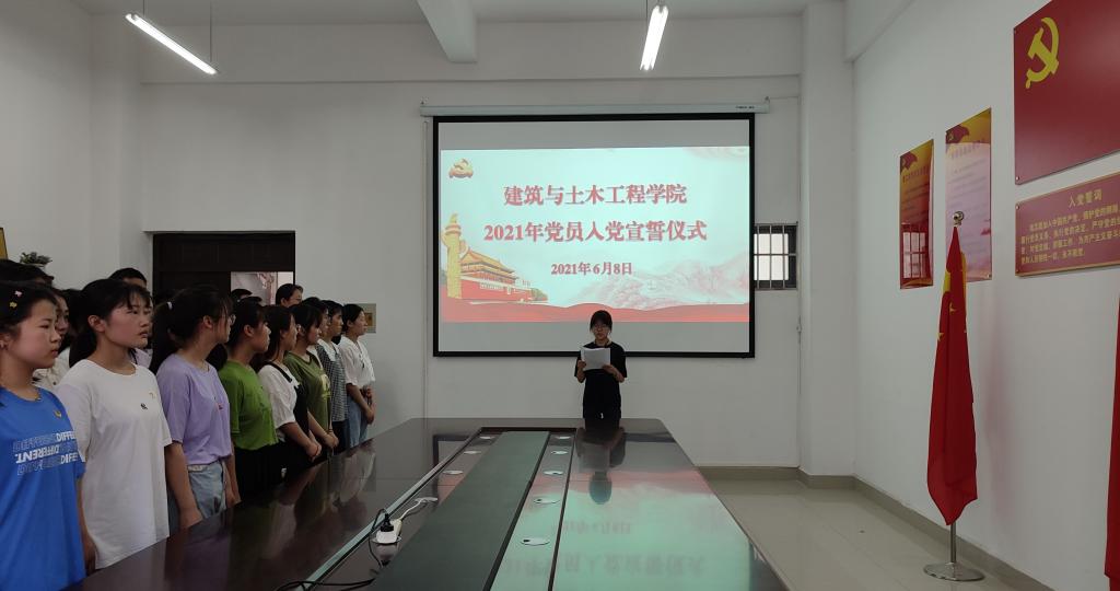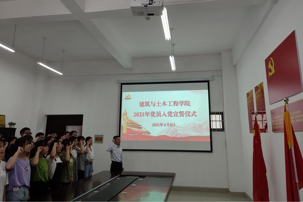 6月8日下午,beat365中文官方网站在综合实验楼203会议室举行2021年上半年新党员入党宣誓仪式。出席仪式的有学院党委书记黄学玉、党委副书记方明科、学生党支部书记、35名新党员、部分老党员及入党积极分子代表。仪式由方明科主持。