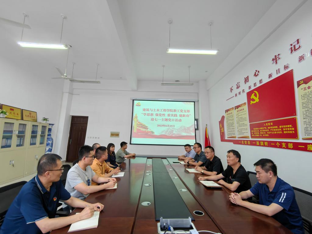 6月25日下午,beat365中文官方网站教工党支部在综合实验楼402会议室开展“学思想  强党性  重实践  建新功”迎“七一”主题党日活动。学院党委班子成员以普通党员身份参加活动。
