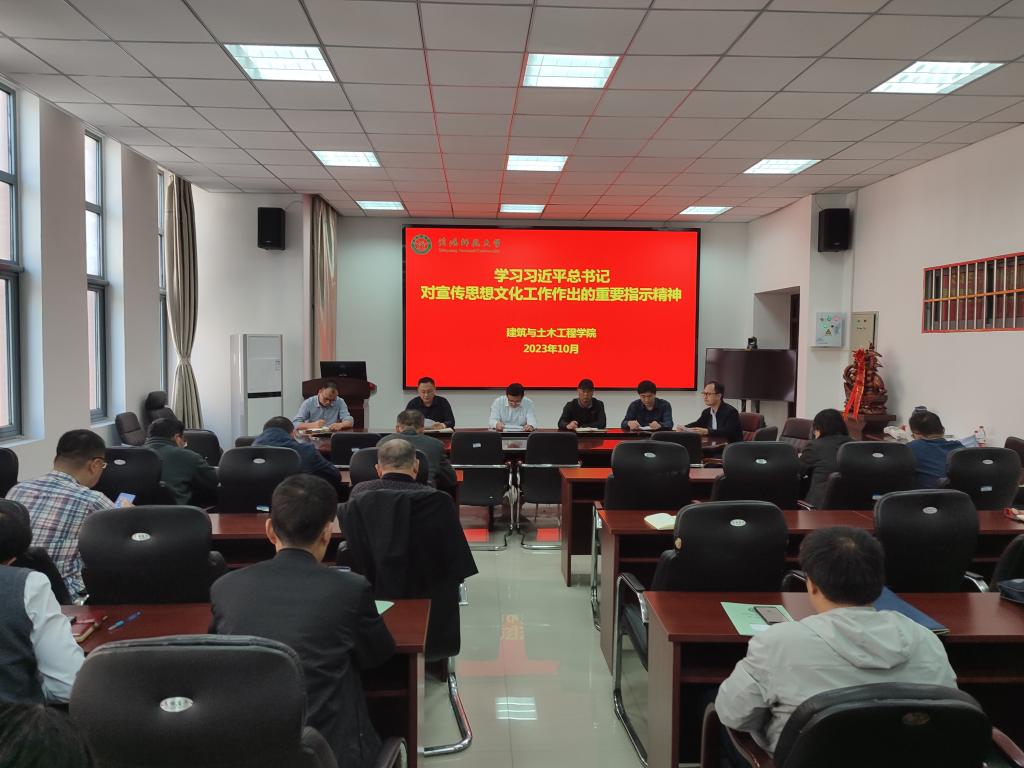 10月7日至8日,全国宣传思想文化工作会议在北京召开,会上传达了习近平总书记对宣传思想文化工作作出的重要指示正式提出和系统阐述习近平文化思想。建筑与土木工程学院党委迅速掀起学习宣传热潮,推动习近平文化思想入脑入心、落地生根,不断开创新时代宣传思想文化工作新局面。