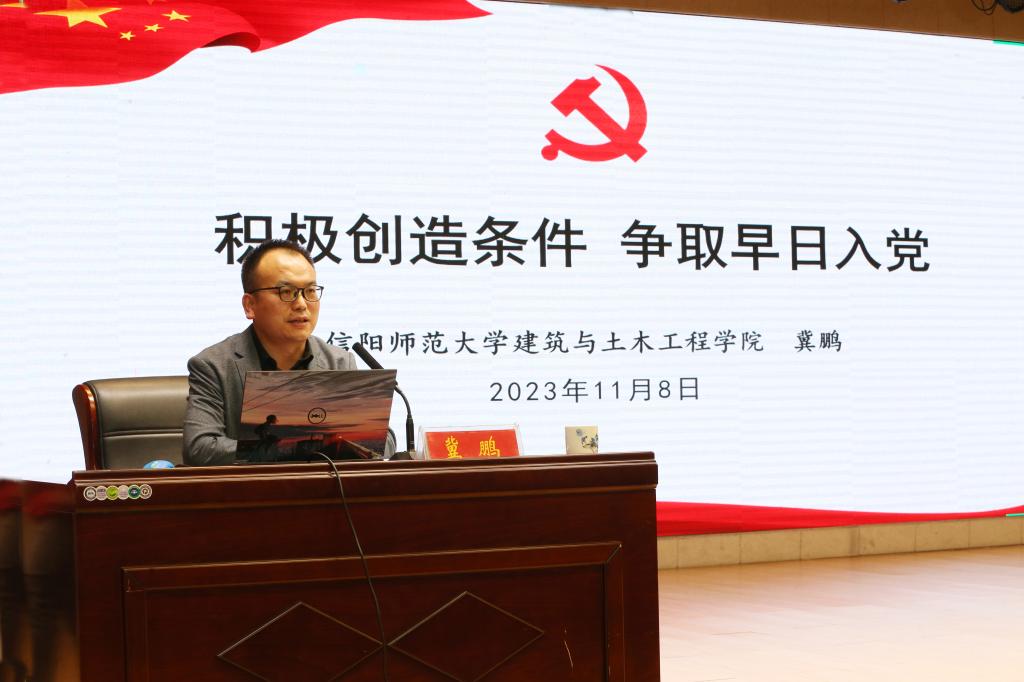 11月8日晚,beat365中文官方网站党委副书记冀鹏应邀在理科楼报告厅为信阳师范大学第40期党员发展对象培训班作《积极创造条件 争取早日入党》专题报告,共有649名党校学员通过线上+线下形式聆听报告。