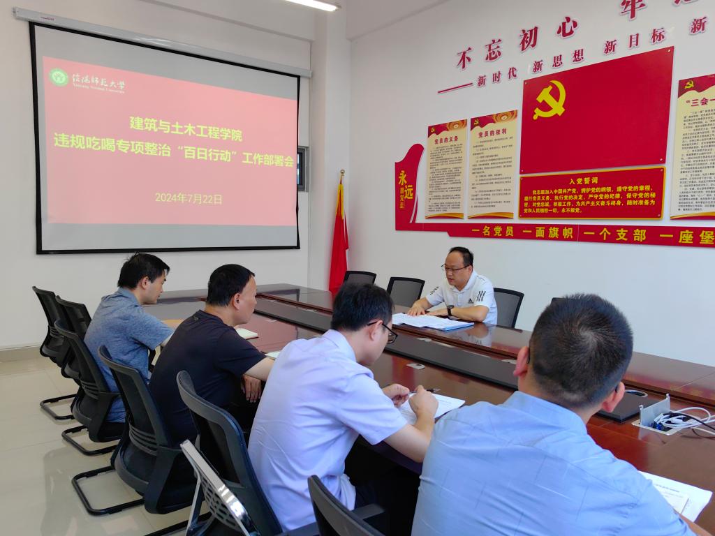 7月22日,beat365中文官方网站在综合实验楼402会议室召开违规吃喝专项整治“百日行动”工作部署会。学院党政领导班子成员参加会议。会议由学院党委书记王永贵主持。