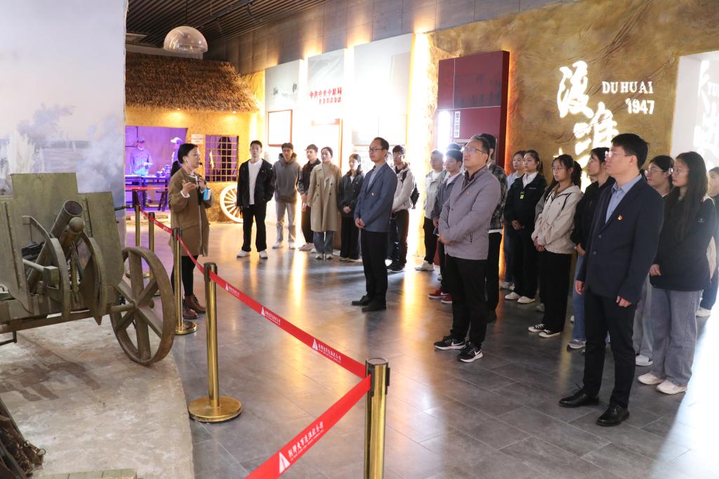 党员们首先来到刘邓大军渡淮纪念馆,一幅幅图片、一件件实物、一段段文字、一场场布景,诉说着刘邓大军千里挺进大别山、抢渡淮河的光辉壮举。党员们在讲解员的生动讲解下,重温了那段坎坷的革命历程,感受到了解放战争的艰辛、革命烈士的英勇和共产党人运筹帷幄、决胜千里的宏伟气魄,深切体会了革命先辈们坚定的理想信念和对党的无限忠诚。全体党员在学院党委书记王永贵的带领下重温入党誓词,以铮铮誓言坚定初心使命。学生党员代表为大家讲述了《一颗红心永向党—开国大将徐海东》的红色故事。