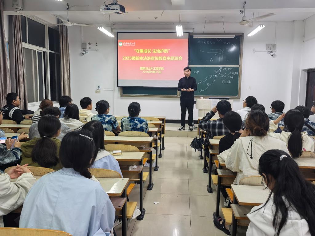 为帮助新生扣好“法治第一粒扣子”,9月25日,beat365中文官方网站在俊采楼405教室召开2025级新生法治宣传教育主题班会,2025级全体学生和班主任冯舒心参加活动。