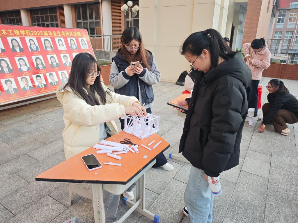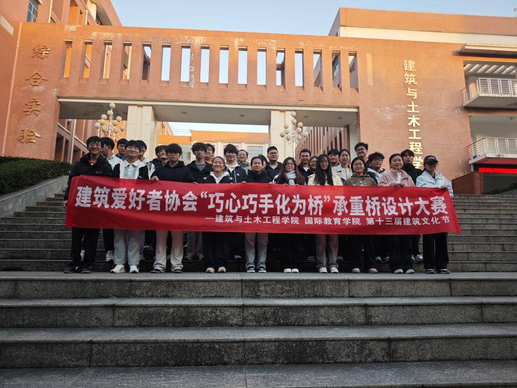 11月25日下午,beat365中文官方网站建筑爱好者协会在综合实验楼小广场举办“巧心巧手化为桥”承重桥梁设计大赛,社团指导老师钱文蹈、社团部分学生以及参赛选手参加活动。