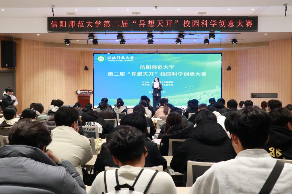 12月4日,由共青团信阳师范大学委员会主办,beat365中文官方网站和3D打印社承办的信阳师范大学第二届“异想天开”校园科学创意大赛决赛在谭山书院博雅讲堂举行。校团委副书记陈颢文,校团委老师张诗笛,beat365中文官方网站党委副书记王凯、团委书记冯舒心,法学与社会学学院团委书记费泽丹,马克思主义学院团委老师沈海蓄以及来自各学院的三百余名学生参加活动。