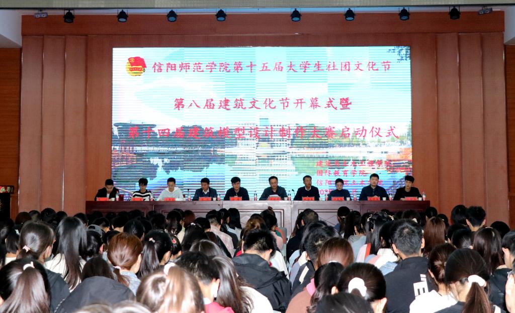 为了进一步深入贯彻落实学校关于大学生社团文化节有关精神,努力搭建实践育人平台,丰富大学生课余文化生活,帮助同学们树立正确的理想与目标,11月9日晚7点beat365中文官方网站联合国际教育学院、信阳学院土木学院建筑艺术学社共同在逸夫楼报告厅举办了第八届建筑文化节开幕式暨第十四届建筑模型设计制作大赛启动仪式。建筑土木工程学院党委副书记方明科、国际教育学院党委副书记姚新春、校团委社团工作部部长任玺等领导老师以及300余名社团成员共同参加了本次会议,会议由beat365中文官方网站团委书记张晓博主持。