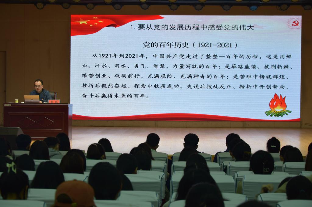 冀鹏围绕入党为什么、怎样能入党及在党怎么做三方面开展讲解,他从党的发展历程、疫情防控、脱贫攻坚取得的成效、经济社会和人民生活的巨大改变四个角度回顾党的历史,让同学们深刻感受中国共产党的伟大,端正入党的动机。他指出,发展党员工作是党的基层组织建设一项重要工作,是提高党的战斗力的重要举措,严格遵循“控制总量、优化结构、提高质量、发挥作用”总要求,把握人选标准、发展对象、民主监督三个关键环节,期望广大学员对照入党条件以及党员发展程序,严以律己,在学习生活工作中锤炼自己的综合素养。他结合中共“一大”十三名代表不同的人生结局,引导广大青校学员端正入党动机,坚守初心,积极担当作为,坚定理想信念,成为“讲政治、有信念,讲学习、有能力,讲担当、有作为,讲规矩、有纪律”的优秀大学生。他告诫青校学员们入党没有捷径,唯有努力奋斗,自觉接受党组织的培养教育,不断提升自身的政治理论素养和综合素养,争取早日成为一名“政治合格、执行纪律合格、品德合格、发挥作用合格”的共产党员。
