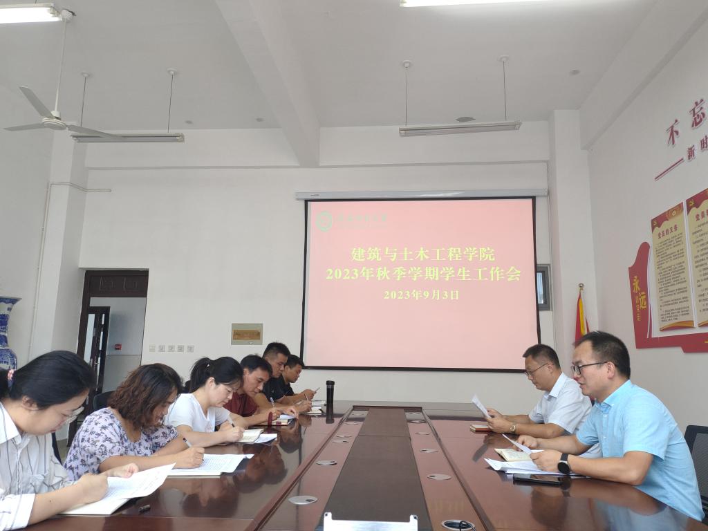 9月3日上午,beat365中文官方网站在综合实验楼402召开2023年秋季学期学生工作会,学院党委书记方明科、党委副书记冀鹏和全体专兼职辅导员参加会议。
