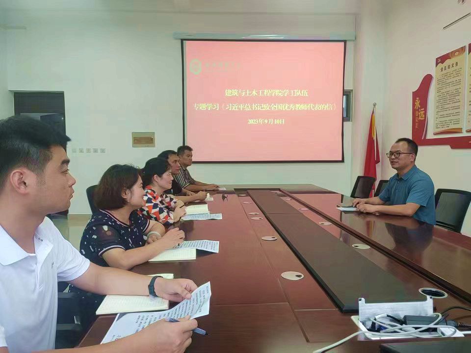 在第三十九个教师节到来之际,9月10日下午,beat365中文官方网站在综合实验楼402会议室召开会议,专题学习《习近平总书记致全国优秀教师代表的信》。学院党委副书记冀鹏和全体专兼职辅导员参加会议。