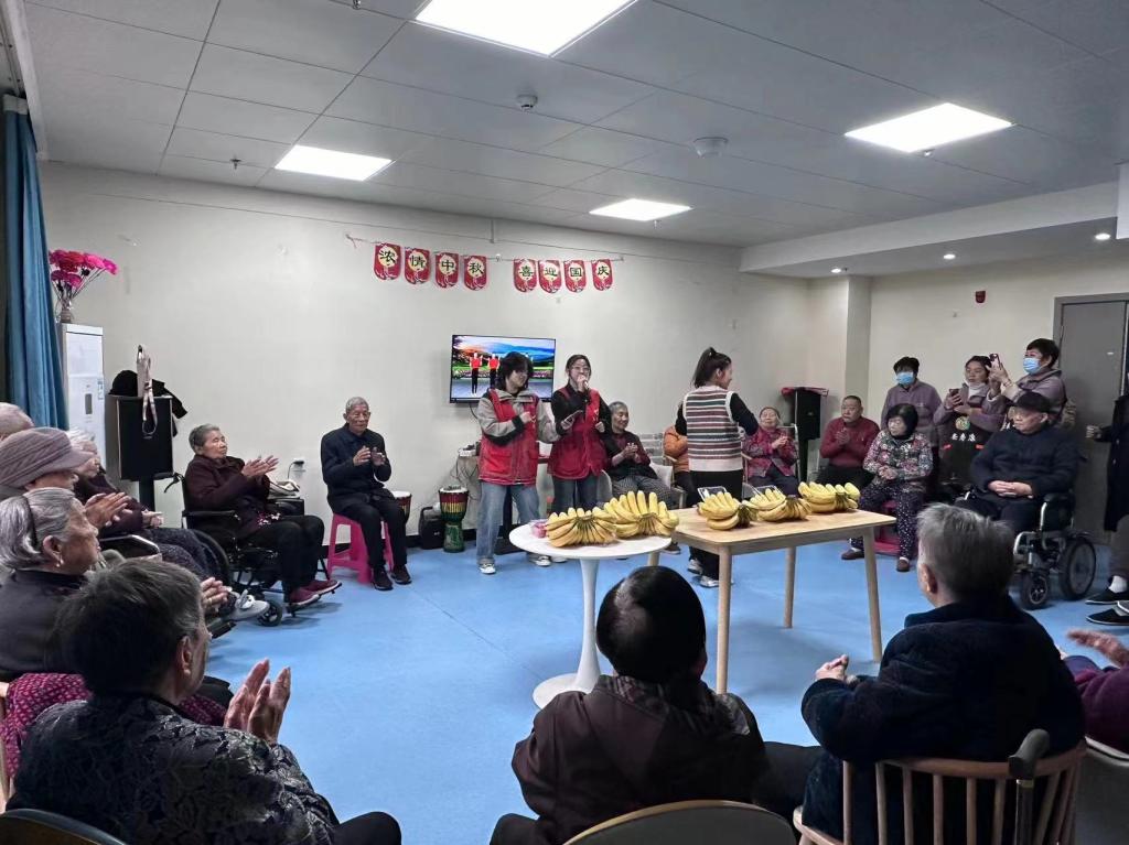 春晖寸草,敬老爱老送温暖。前往五星光荣敬老院、颐居养老院和湖东三五八养老服务中心开展志愿服务活动,为老人带去水果、牛奶,打扫起居室和活动室,陪他们聊天、晒太阳,还表演了《强军战歌》、《母亲》等歌曲。奶奶们也联手为志愿者们带来戏曲《七仙女》,活动现场气氛热烈,让孤寡老人们感受到社会温暖。