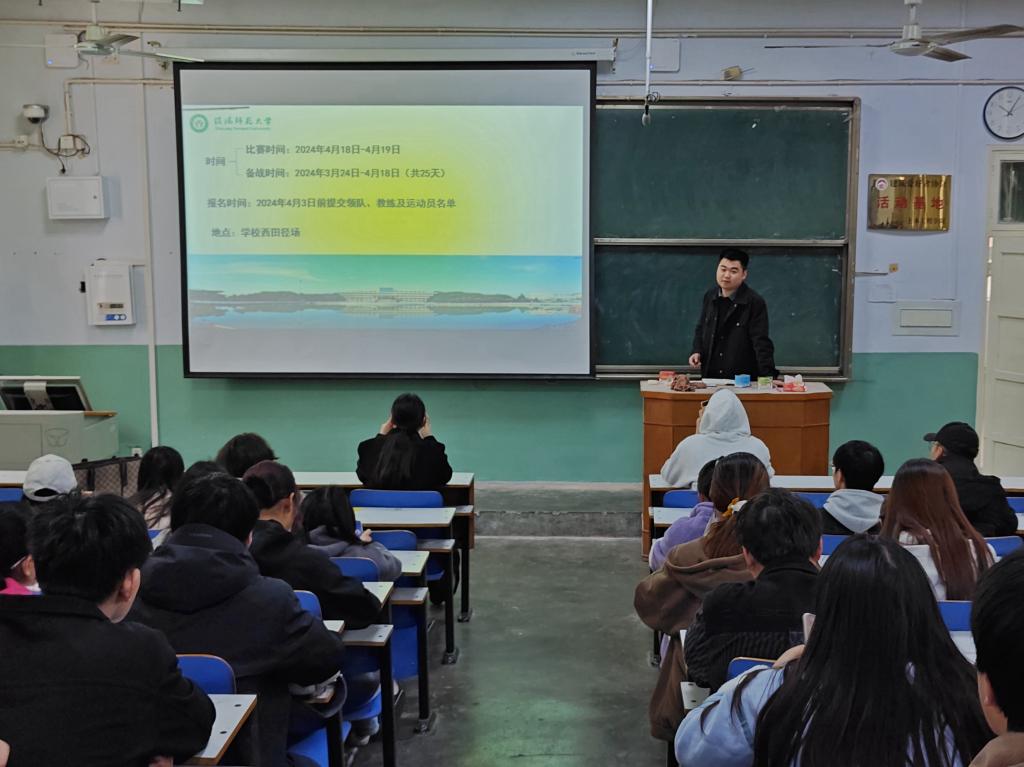 会上,冯舒心就春季运动会的时间地点、项目组别、竞赛办法、录取名次、奖励办法及注意事项等进行了详细讲解,并就报名选拔、日常训练、后勤保障等工作做了细致安排,希望学生会和各班级明确分工,相互搭台,狠抓细节,共同担责,助力此次运动会的顺利开展,预祝我院在此次运动会上取得优异成绩。随后2020级学生代表齐少卿、卞硕硕分别从运动员和志愿者的角度分享了自己的经验,鼓励同学们积极报名,认真准备,赛出自我,赛出风采。