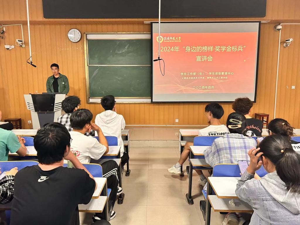 为进一步拓展学生资助工作的育人功能,充分发挥奖学金获得者青年榜样的先进典型导向作用,4月18日,beat365中文官方网站联合计算机与信息技术学院在计算机楼107教室召开了2024年“身边的榜样·奖学金标兵”宣讲会。学院2023和2022级学生参加了宣讲会。