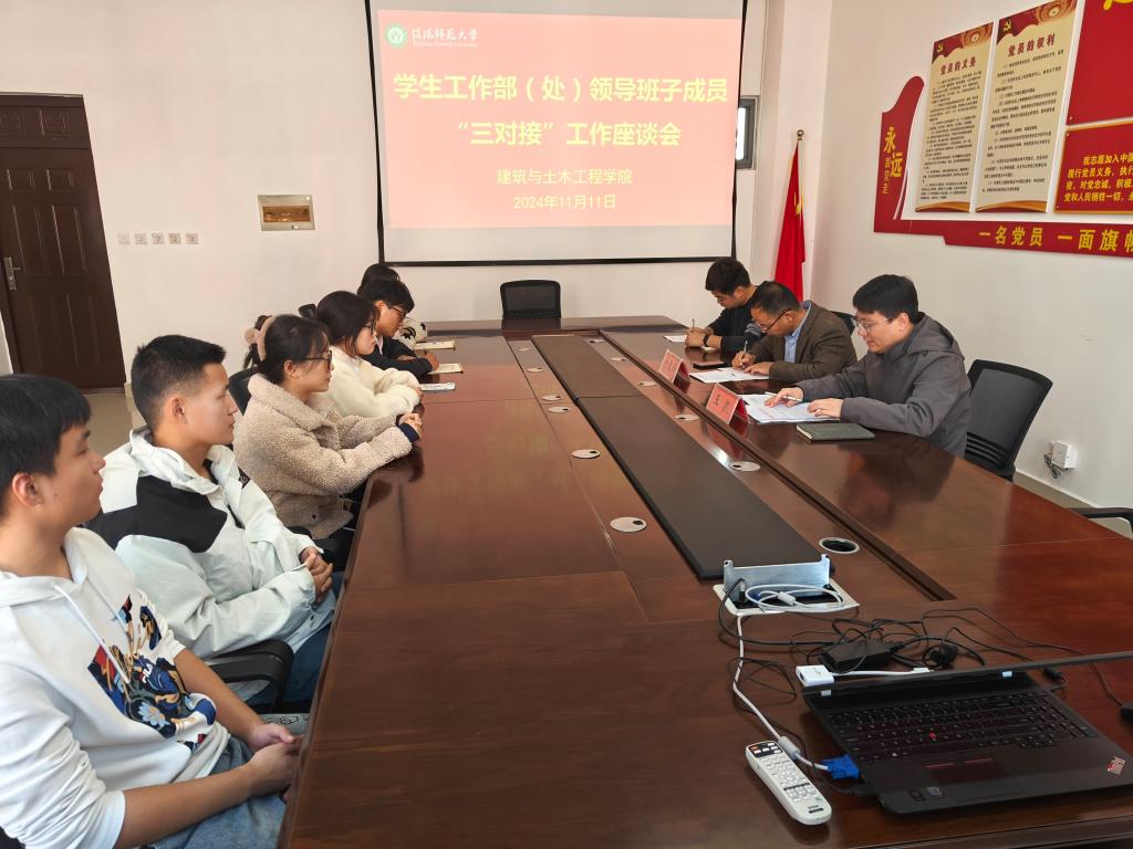 会上,王凯介绍了beat365中文官方网站学生工作基本情况,传达了学校《学生工作部(处)领导班子“三对接”制度》精神。班主任冯舒心介绍了对接班级2023级土木工程2班的基本情况。互动交流环节,学生们积极踊跃地分享了他们在思想动态、学业进展、日常生活等方面情况,并坦诚地表达了在生涯规划、班级管理、升学就业等方面所遇到的挑战与困惑。同时,他们还就学生管理工作优化、后勤服务提升、宿舍环境改善等问题,提出了一系列富有建设性的意见与建议。与会领导、老师认真倾听、详细记录,针对学生们提出的问题与困惑,逐一给予解答和指导。