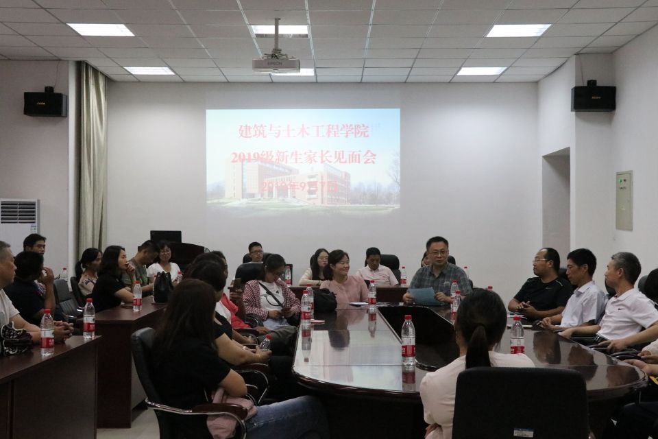 9月7日下午,建筑与土木工程学院2019级新生家长见面会在综合实验楼206会议室举行。学院党委书记黄学玉、党委副书记方明科、副院长刘林超、工程管理系系主任李建楠、2019级新生辅导员张海燕及部分新生家长参加了本次见面会。