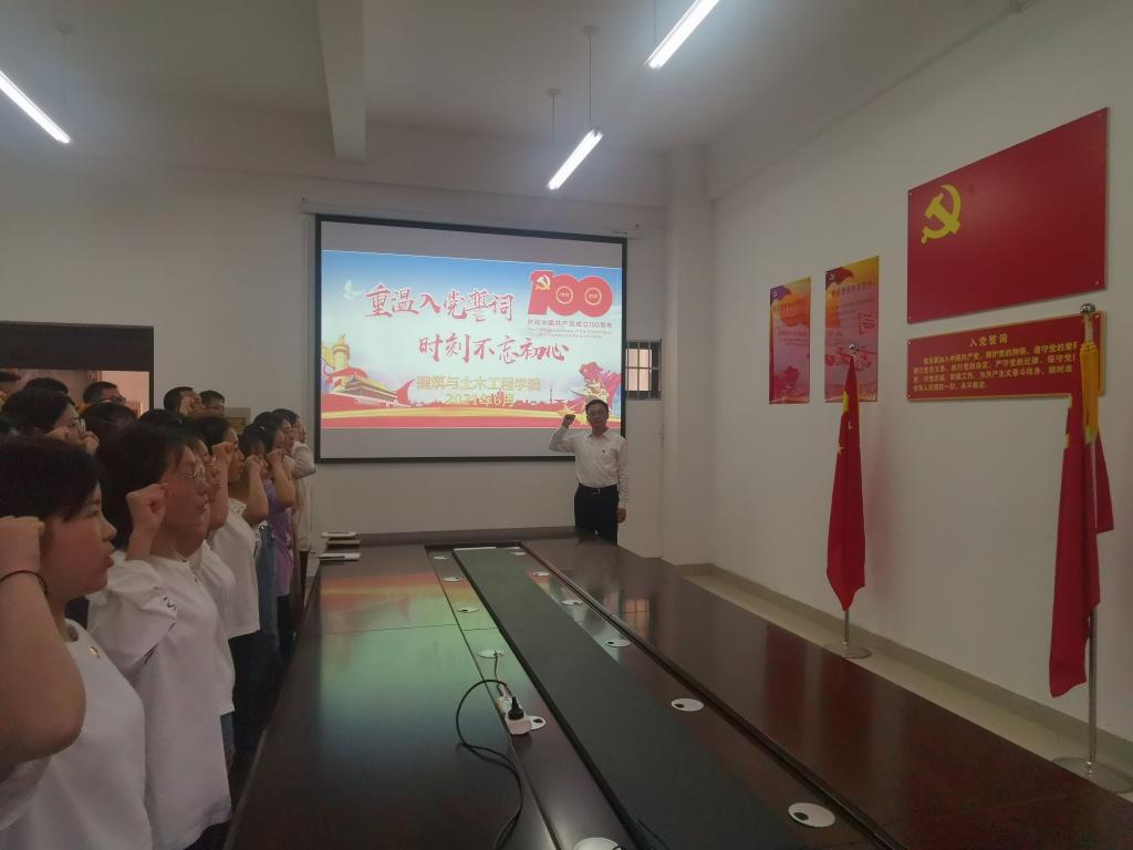 重温入党誓词,时刻不忘初心。在建筑与土木学院党员之家,面对鲜红的党旗,全院学生党员佩戴党员徽章,举起右手,紧握拳头,声音铿锵,再次庄严地向党宣誓。重温入党誓词使同学们进一步明确了自己的庄严承诺,坚定了理想信念,接受了心灵的洗礼,强化了一名共产党员在新时代里的责任感、使命感和紧迫感。