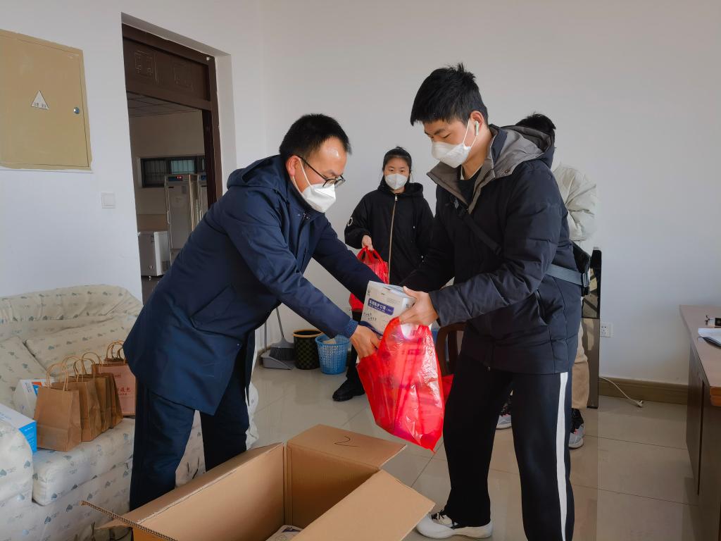 学院党委相关负责人及毕业班班主任深入学生宿舍,点对点为考研学子发放了“考研加油包”,并表达了关怀与祝愿。叮嘱学生提高防护意识,积极调整考前心态,如若遇到生活和学习上的困难,要主动向学院反馈,学院会努力为同学们解决问题,做好服务保障工作。