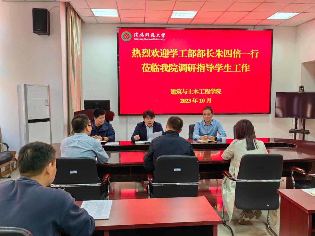 10月20日下午,党委学工部部长朱四倍带领副部长王忠磊、思想政治教育科科长孙绪曙来建筑与土木工程院调研指导学生工作。学院党委书记方明科、党委副书记冀鹏、学院全体专兼职辅导员参加调研。
