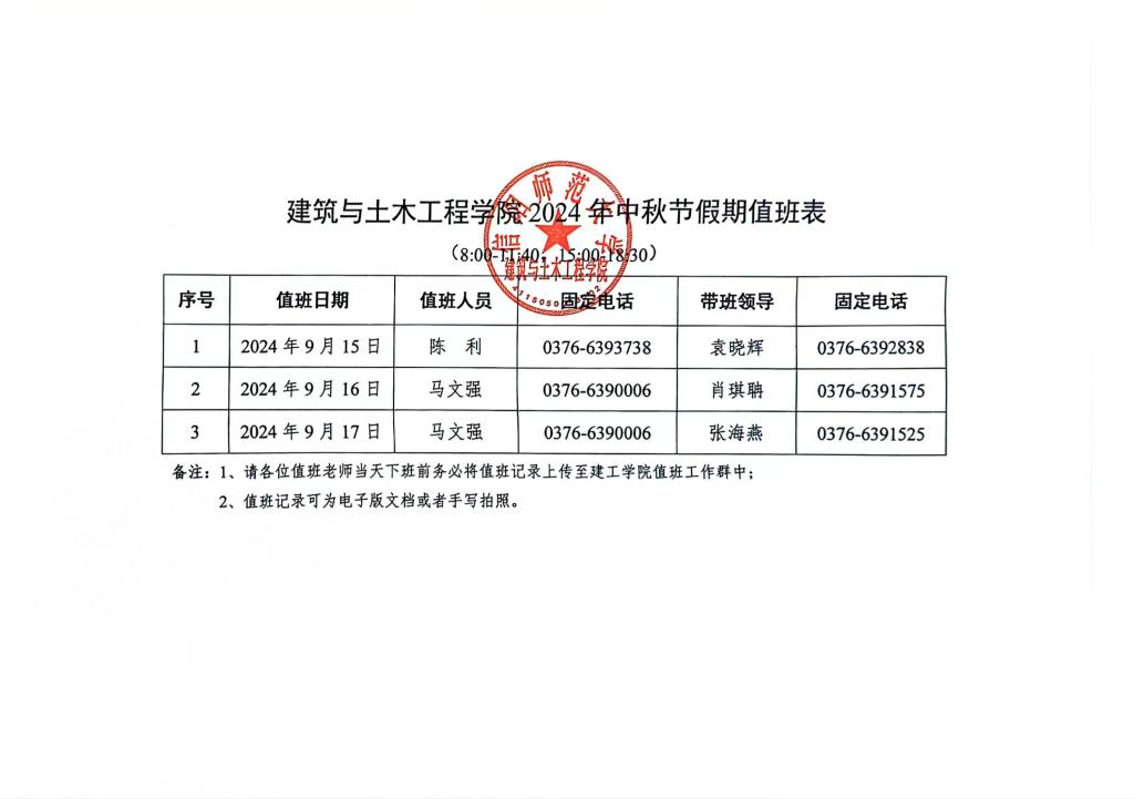 beat365中文官方网站2024年中秋节值班表