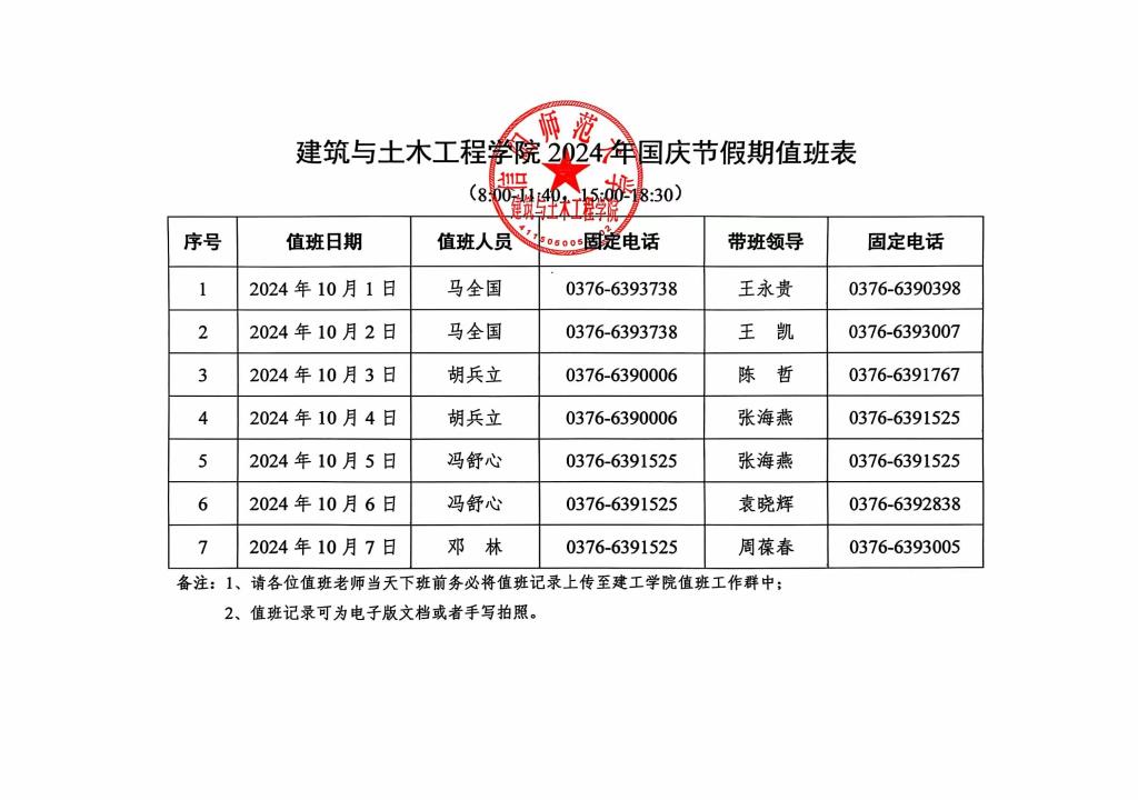 beat365中文官方网站2024年国庆节假期值班表